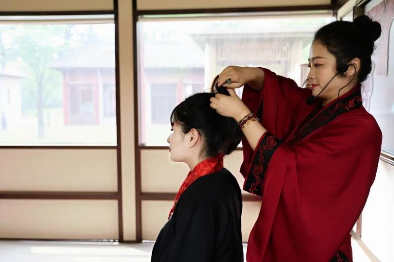本次活动依托原创展览《有美一人——汉代女性服饰文化专题展》,以理论认知+实践体验双轨模式,设置三大特色环节第一天元日理云鬓·妆点汉时容课程亲子家庭观察汉代陶俑发式、聆听历史故事,为汉代小人偶设计妆容,感受汉代发饰礼仪内涵。第二天岁启染华章·织就吉祥纹课程教育员讲解汉代服饰色彩规制与寓意,孩子们体验扎染技艺,制作带有吉祥纹样的汉服小方巾,体悟传统工艺匠心。最后一天衣冠载礼乐·端正揖新春课程,亲子家庭挑选深衣、曲裾等汉服款式,习练元旦揖礼并参与礼仪展演,感受中华衣冠上国、礼仪之邦的雍容气度。