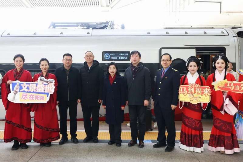2026年2月11日,汉景帝阳陵博物院联合西安局集团公司西安客运段,在G916次跨境列车上举办“陕港高铁品汉韵 丙午瑞马迎新春”庆祝丙午瑞马小年主题文化宣传活动。陕西省文物局二级巡视员王金青、西安局集团公司党委宣传部(企业文化部)部长熊垚光、西安局集团公司西安客运段党委副书记梁波、陕西省文物局三级调研员易嵘和汉景帝阳陵博物院副院长何宏参加了本次活动。