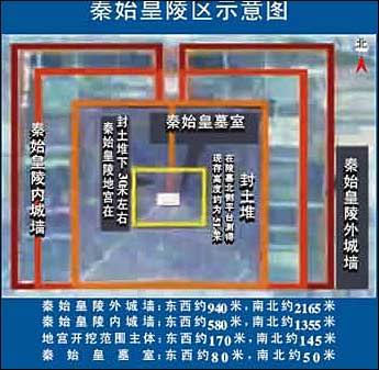 秦陵地宫是竖穴土圹墓,专家利用重力定量技术推算出地宫的开挖范围为东西170米,南北约145米,深约30米,墓室底部东西80米,南北宽约50米。如果把这个口大底小的土圹粗略计算,要挖掘土方约50多万立方。